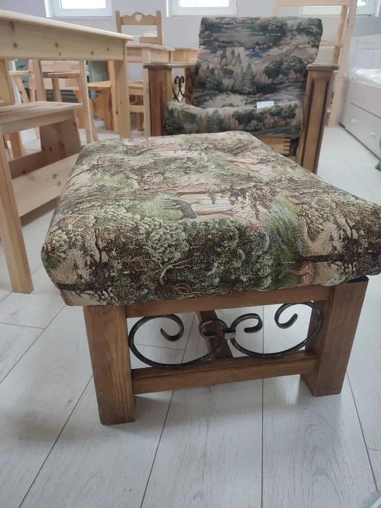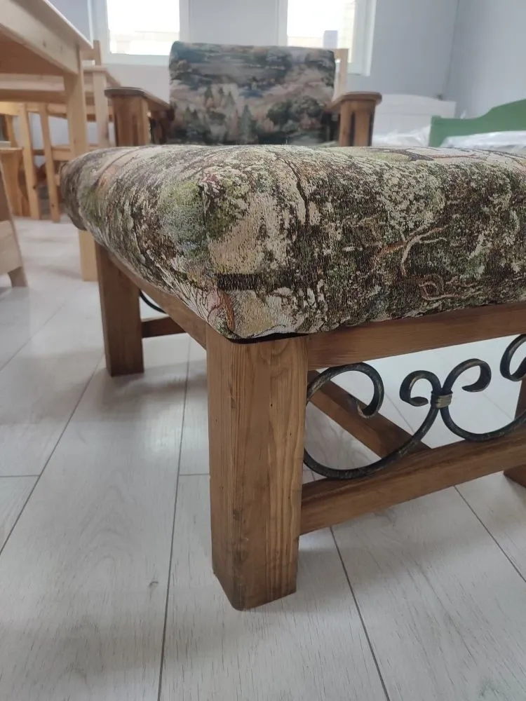 - Материал: Массив сосны, гобелен,ковка